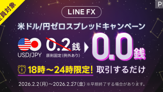 先日、Xでも話題になっていた通り、LINE FXでは ドル円(USD/JPY)のスプレッドが期間・時間限定で0になるキャンペーンが実施されます。キャンペーン詳細対象期間は 2月2日(月)〜2月27日(金)各営業日の 18:00〜24:00 ...