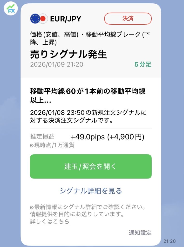 PCの前にいない時間帯でも相場の動きを把握でき、チャンスを逃しにくくなる仕組みだと思いました。