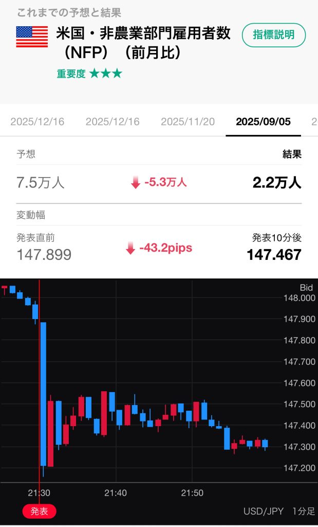 前回の結果数値や、その結果を受けてどういう値動きをしたか?が分かるようになっています。